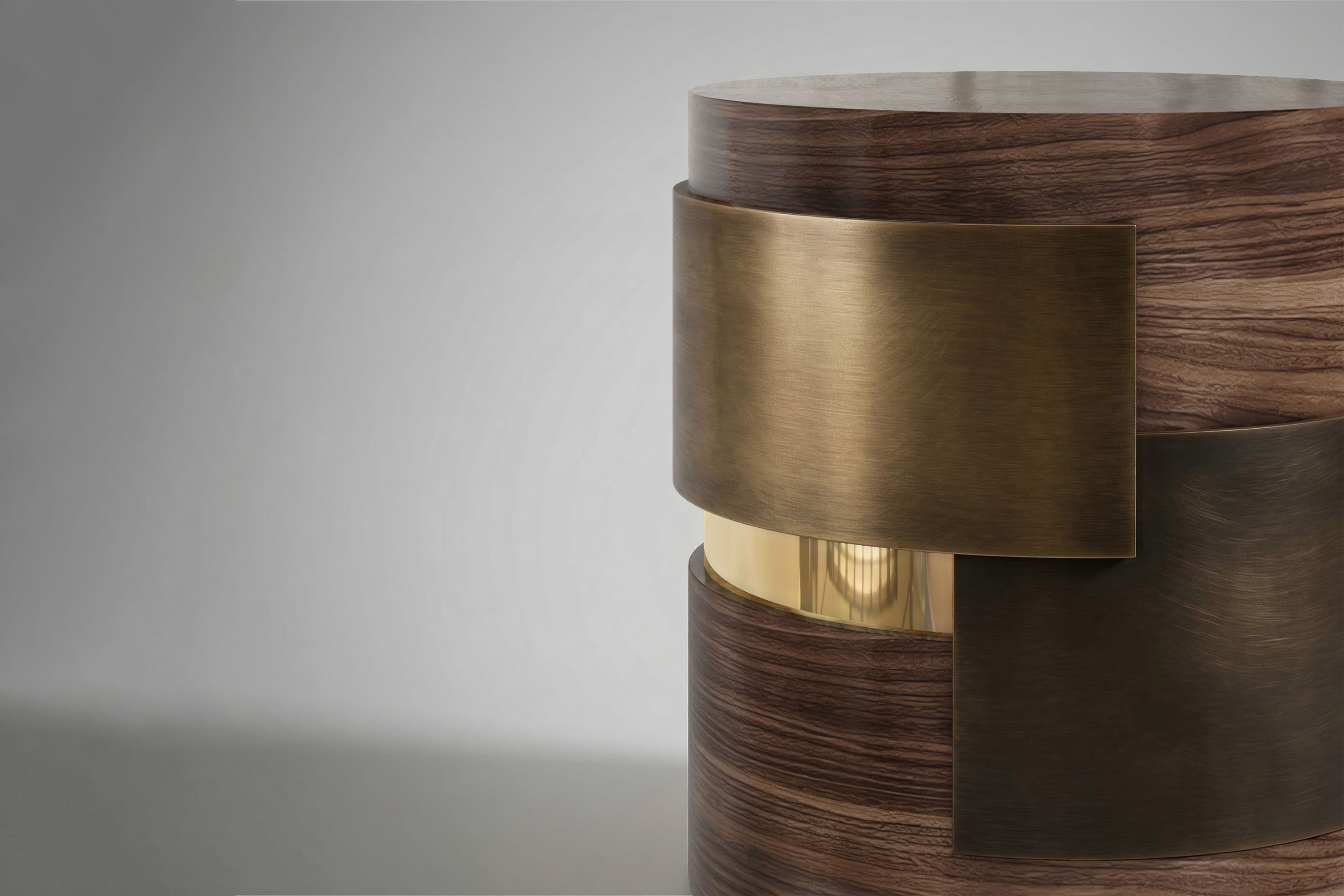 This piece executes a breathtaking symphony of distinct textures and opulent finishes. The sweeping, continuous silhouette is defined by the extraordinary use of rare Ziricote veneer, celebrated worldwide for its dramatic, intricate grain and rich, deeply contrasting tones. Complementing this striking organic beauty is a masterful application of dual metallic finishes. The robust, highly textured presence of raw patina bronze grounds the design with an earthy permanence, while brilliant accents of high-polished bronze catch and refract ambient light, creating a dynamic visual friction. This meticulous integration of premium wood and mixed metals transforms a simple geometric form into an exhibition of uncompromising artisanal craftsmanship.