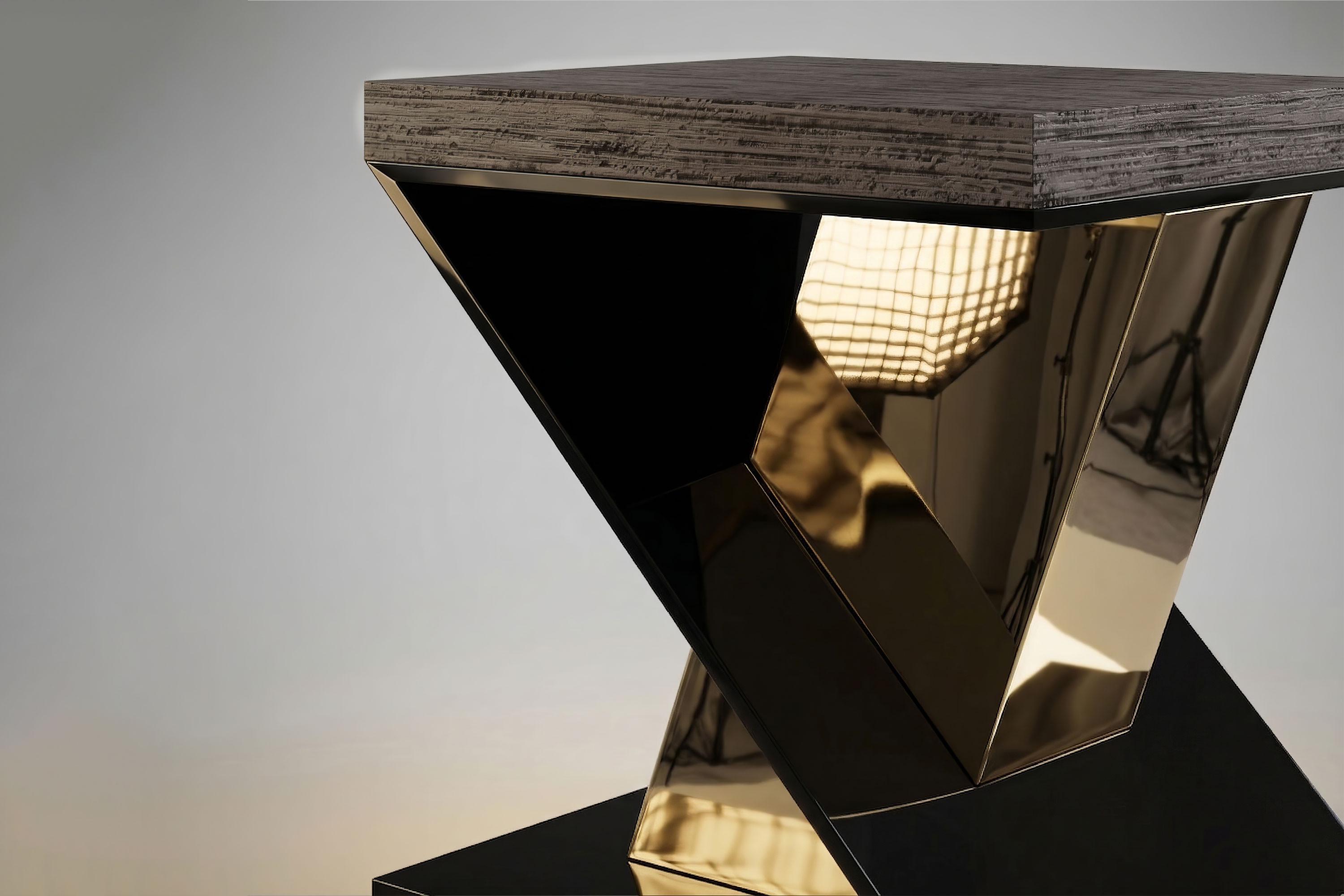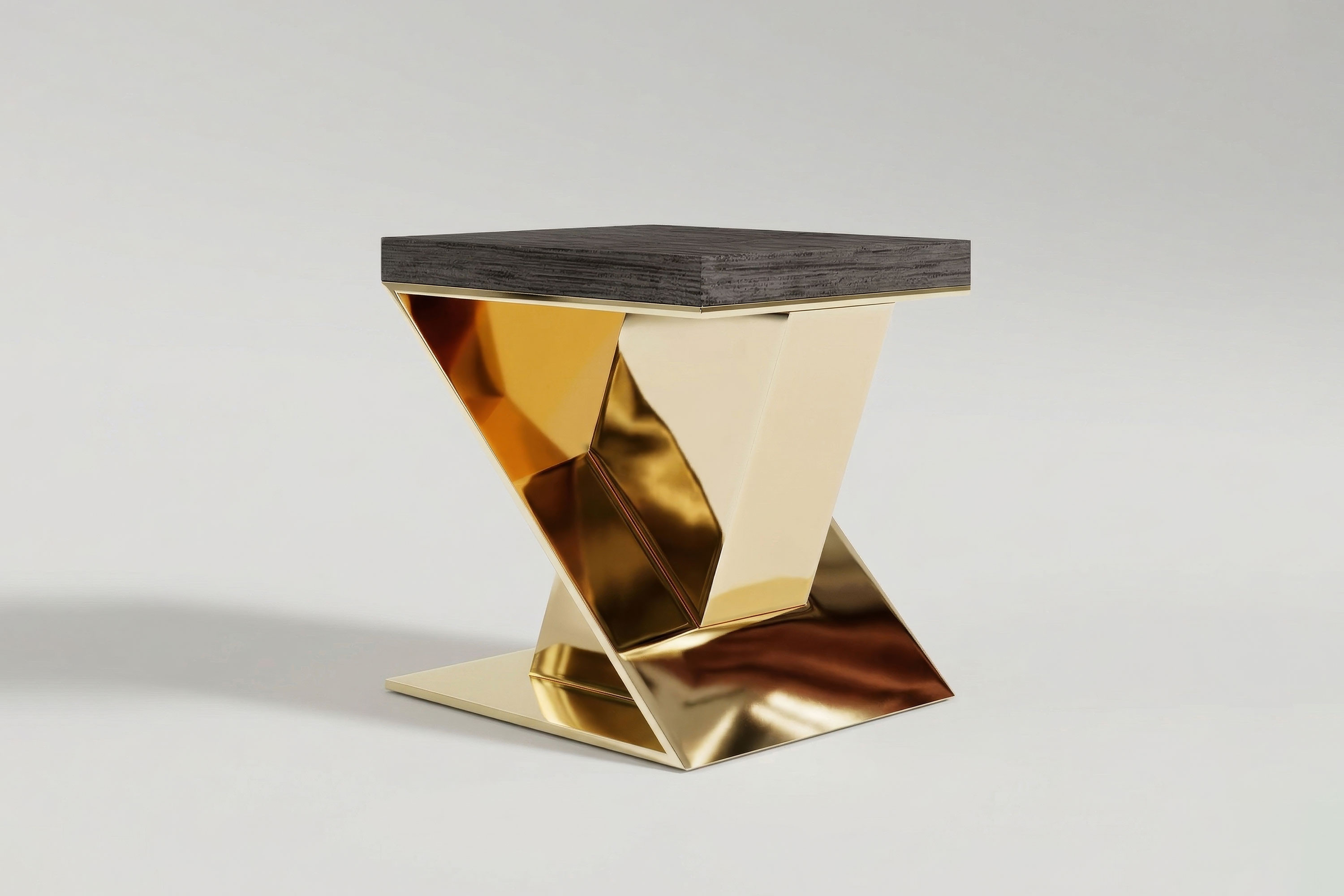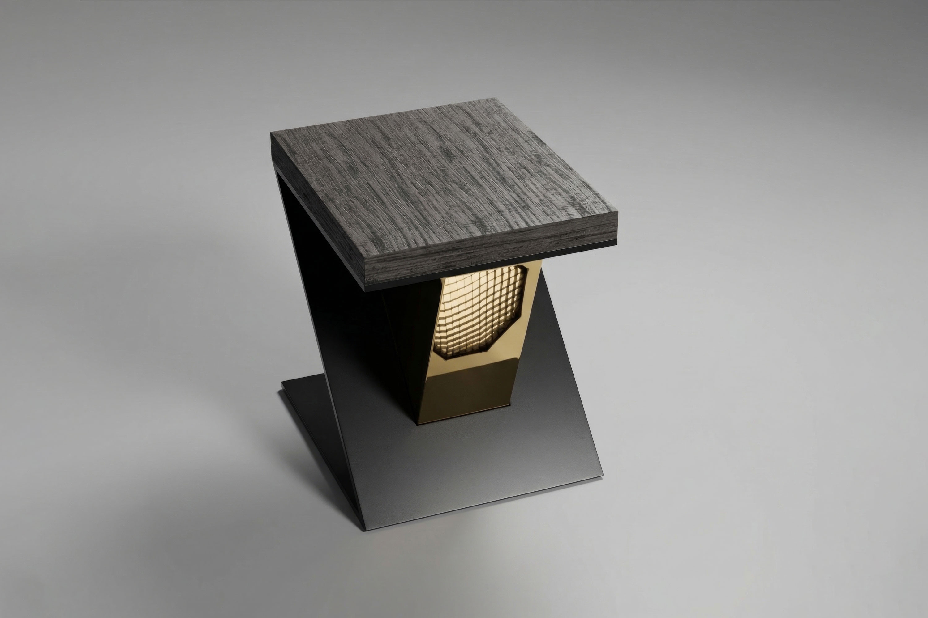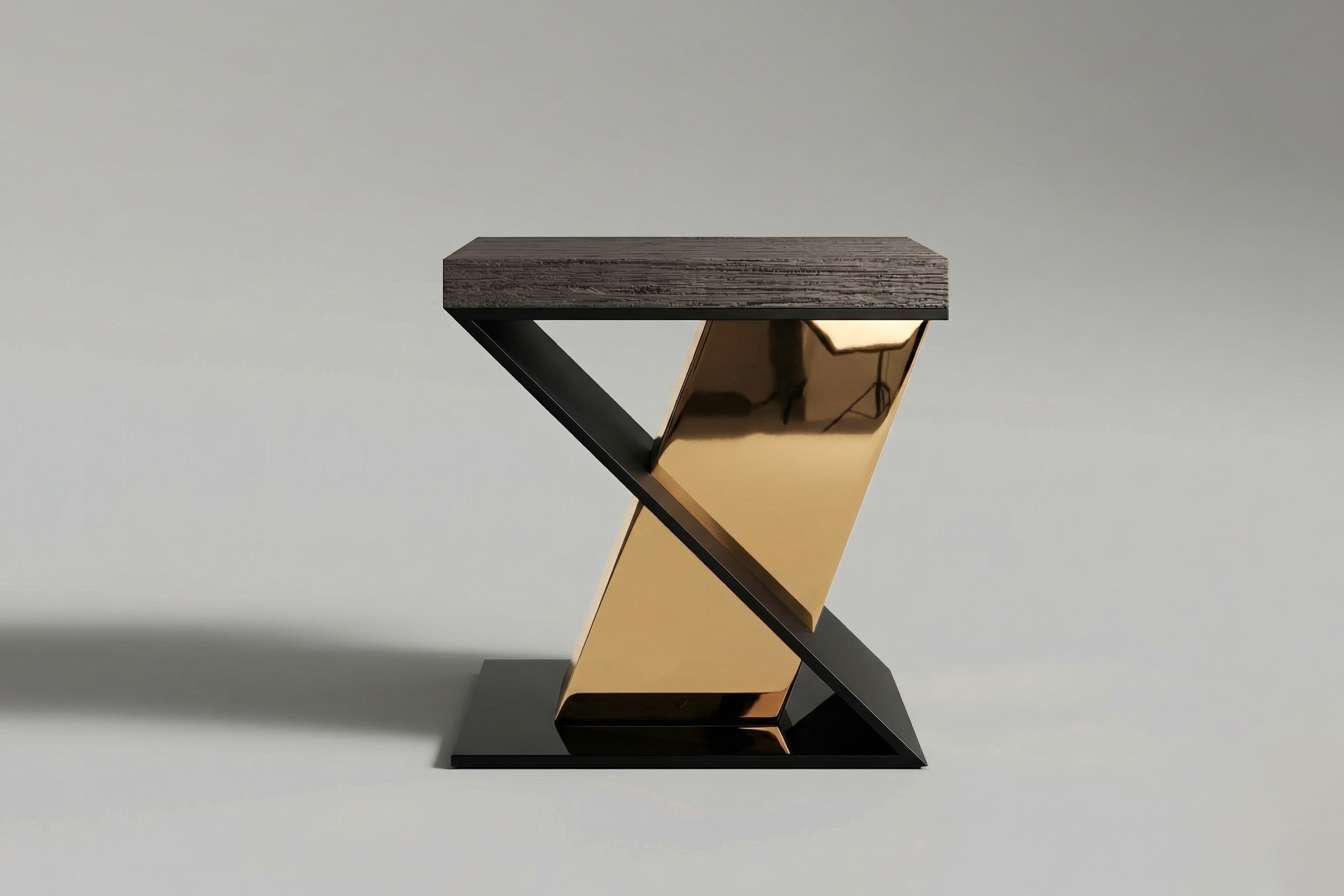 The Gero Side Table is a definitive statement of avant-garde design and dramatic material contrast. Serving as an extraordinary functional sculpture, it anchors the living space or bedroom with a profound, moody elegance and uncompromising architectural rigor.