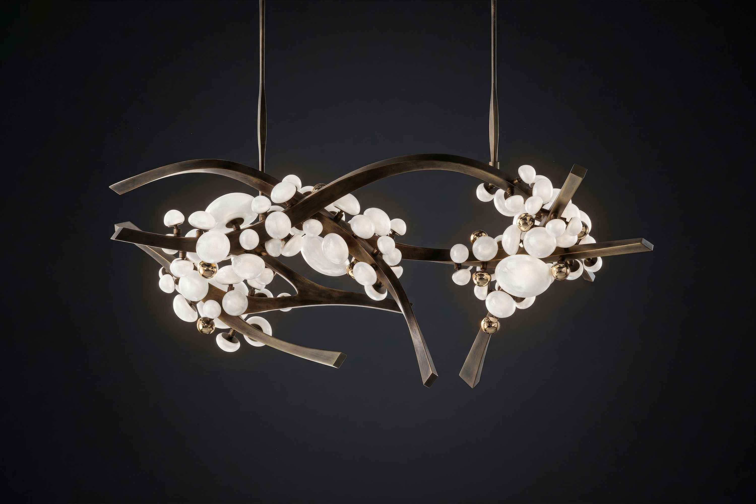 The Intima Horizontal Chandelier is where modern architectural design seamlessly merges with the untamed beauty of nature. Far transcending the role of a mere light fixture, this sculptural centerpiece breathes life into any dining area or grand entryway, transforming the space into a luminous hanging garden.