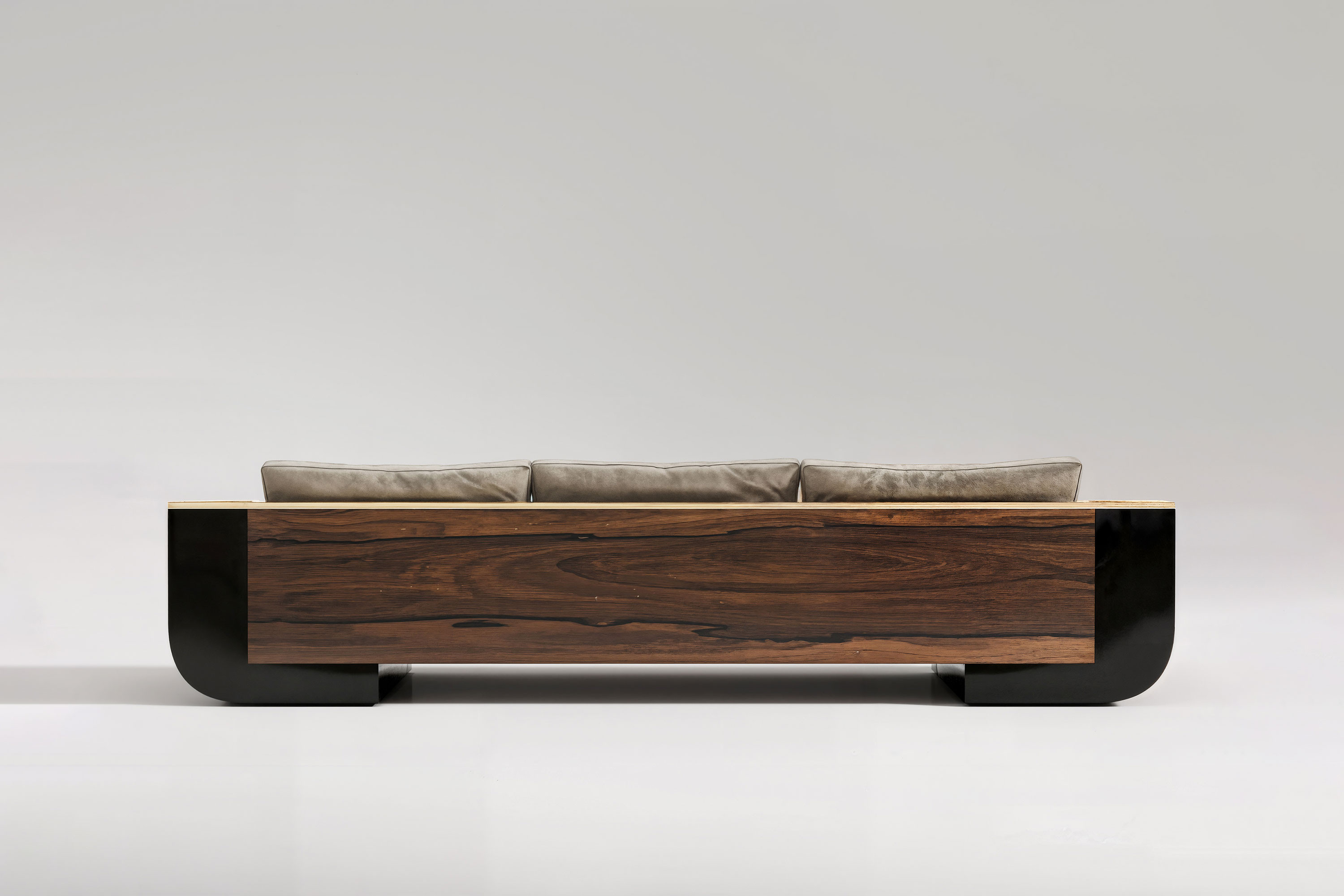 Housed within this severe, architectural shell lies a generously proportioned, deep-seated sanctuary. The voluminous, plush cushioning offers an immersive, uncompromising comfort designed for lazy afternoons and cozy evenings, all while maintaining the sofa’s sharp, avant-garde silhouette. It is a masterpiece that flawlessly merges the rigid beauty of high-end joinery with the soft luxury of premium upholstery.